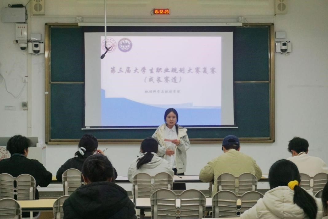 11月20日,地理科学与规划学院于武鸣校区一号教学楼119教室顺利举行大学生职业生涯规划大赛复赛。此次复赛邀请学院辅导员覃辰柳、农宇鹏、李洁柳以及大学生科技创新协会主要负责人陈勃、活动部负责人梁倬铭担任评委。