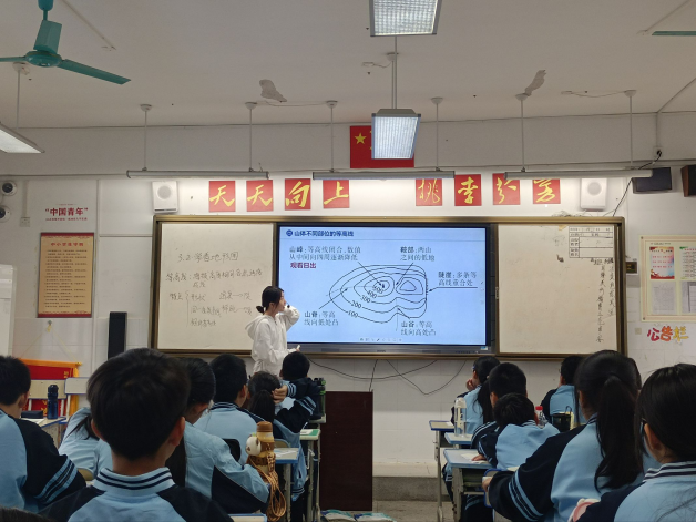 在课堂教学展示中,实习老师罗芯曼以“登高露营”为情境主线,贯穿课堂始终,教学设计层次清晰,环节衔接自然,注重引导学生从生活场景中理解地理概念。她在自评中表示,尽管课程整体逻辑较为顺畅,但在案例选取方面仍缺乏真实具体的实例支撑,语言表达的准确性也有待进一步提高。实习老师韦涵升的课堂则完整呈现了预设的教学环节,内容系统,结构清晰。他在自评中特别反思到了课堂节奏与互动设计方面的问题,指出由于课程以识记性知识为主,难度较低,导致课堂时间略有盈余;同时,课堂互动形式较为单一,以教师讲授和提问、学生被动回答为主,未能充分调动学生的主动性与参与积极性。
