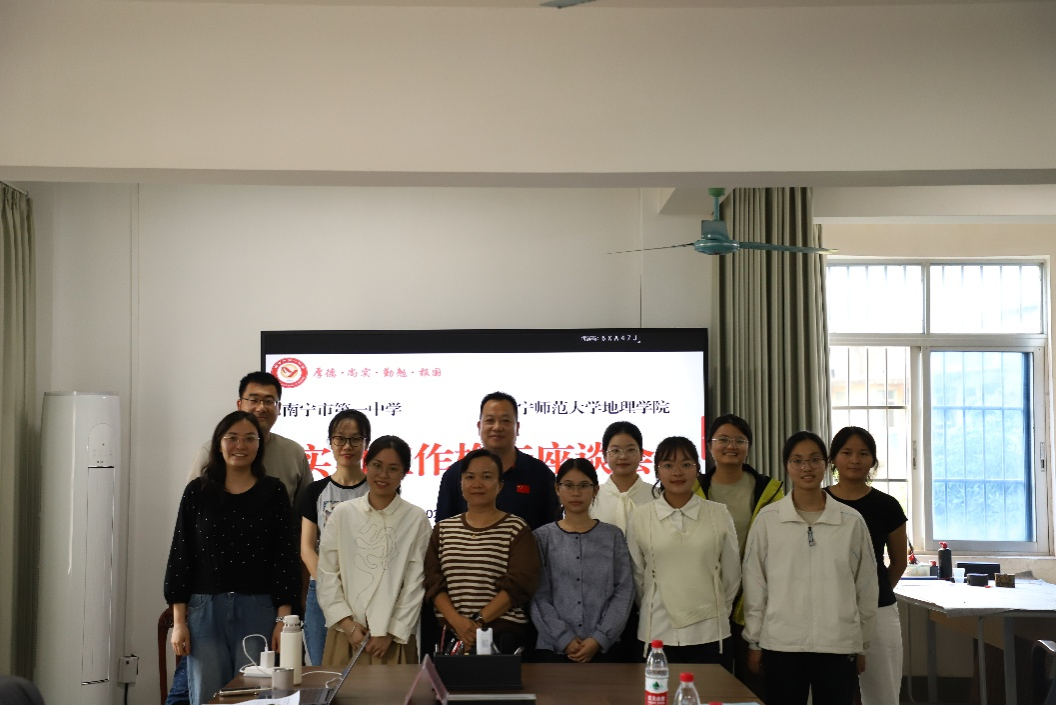 秋光未尽,冬风渐至。近日,地理科学与规划学院2022级地理科学专业教育实习工作进入尾声。为了全面检验实习成果,11月17日,地理科学与规划学院指导老师白琨琳前往南宁市第一中学初中部,对2022级地理科学专业实习小组进行终期成果检查。南宁市第一中学初中部副校长陈福旺、教务处副主任张露尹、地理教学指导教师张征英、李栋、李丽君、黄君燕,以及6名实习老师共同参与了此次的汇报活动。