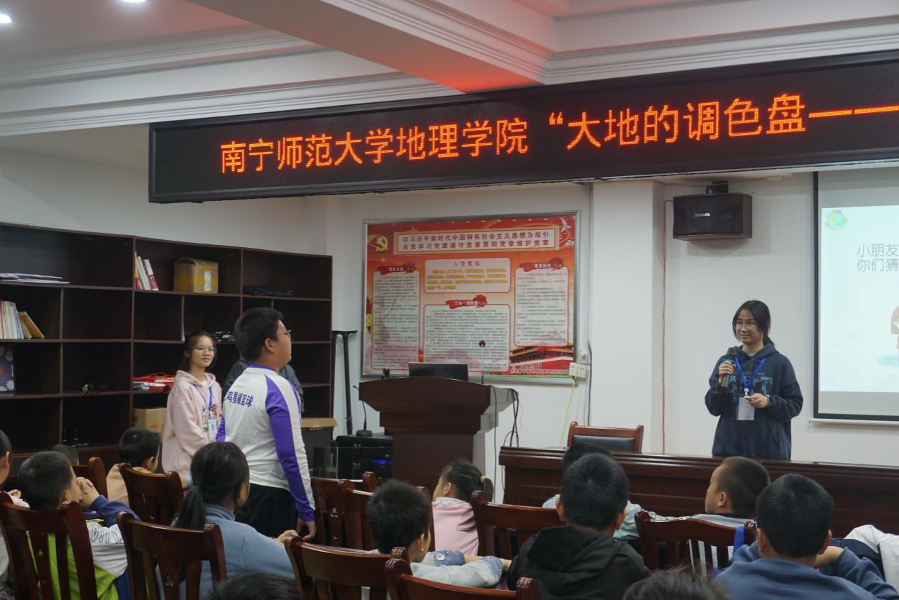 12月7日,地理科学与规划学院青年志愿者协会组织志愿者前往南宁市武鸣区城厢镇和平解放社区,开展了以“地理寻宝,探秘自然”为主题的社区科普活动。
