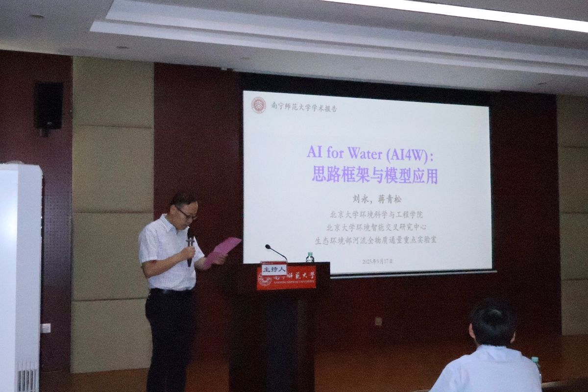 2025年9月17日,地理科学与规划学院在地海楼B106教室开展南国经纬大讲堂第十一期学术分享会。分享会由我院副院长赵银军主持,北京大学环境科学与工程学院院长刘永教授应邀担任主讲。