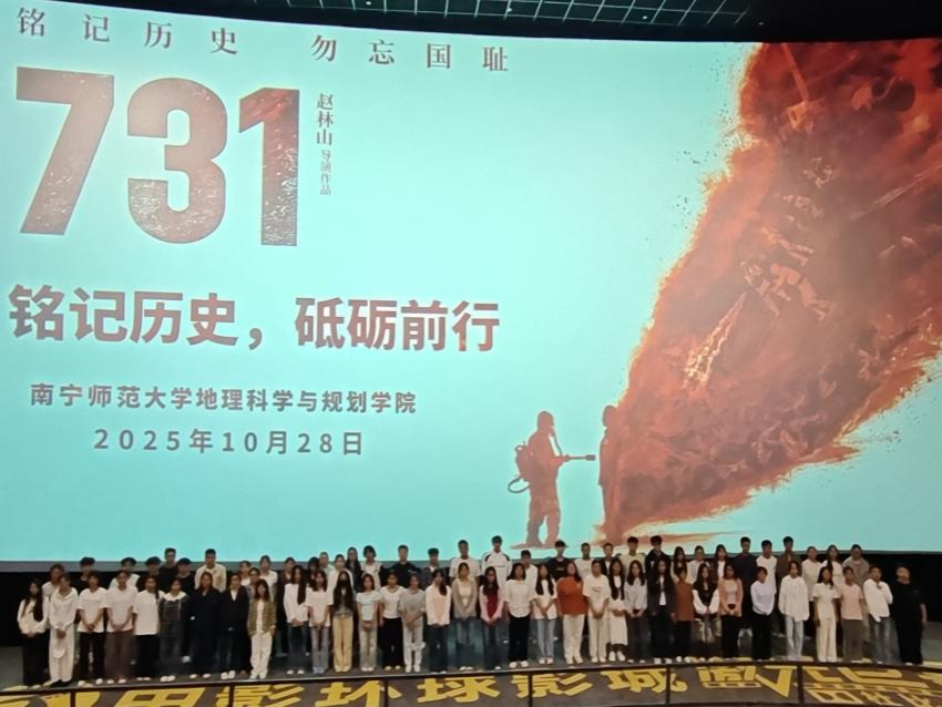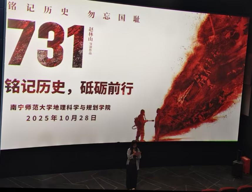 为深入推进爱国主义教育与党史学习教育,引导青年学子传承红色基因、勇担时代使命,10月28日,地理科学与规划学院组织学生党员前往南宁市武鸣区康和城商业广场影院,开展“铭记历史,砥砺前行”主题教育活动,集体观看历史影片《731》。