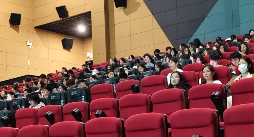 (学生党员落座准备观影)