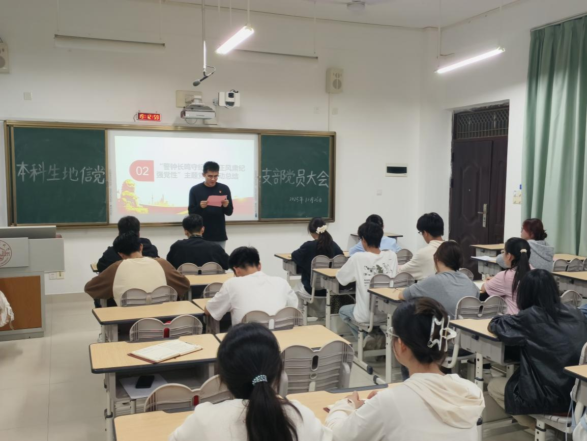 10月26日,地理科学与规划学院本科生地信党支部于武鸣校区1号教学楼302教室召开支部党员大会。会议由党支部书记于志强同志主持,全体党员参会。