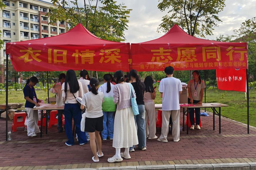 为了深入贯彻落实党的二十大精神,切实深化“三全育人”改革,秉持文化育人的理念,积极弘扬勤俭节约美德,推动闲置物品爱心传递,共建绿色校园文化。11月8日,南宁师范大学地理科学与规划学院青年志愿者协会在南宁师范大学武鸣校区开展以“衣旧情深,志愿同行”为主题的捐衣捐物活动。