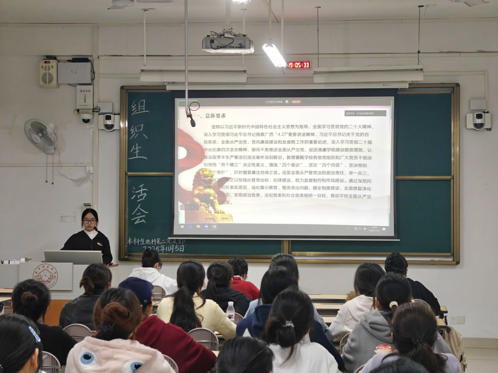 11月5日,地理科学与规划学院本科生地科第二党支部在武鸣校区1号教学楼219教室组织开展“以案促改”专题组织生活会。此次会议由黄东院同志主持,党支部全体党员共同参与。