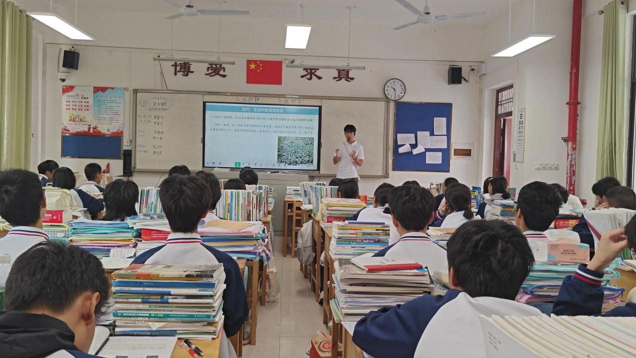 实习初期,11位实习生始终将听课学习作为夯实教学基础的核心任务,全身心投入指导教师与校内优秀地理教师的课堂观摩中。在每一节地理课上,实习生们带着明确的学习目标认真聆听、细致记录,不仅精准捕捉课堂教学的核心脉络,更着重关注教学目标与地理学科核心素养的契合度,分析不同教学环节如何衔接过渡以保障课堂流畅性。此外,实习生们还注重对比分析不同教师的教学风格,有的侧重逻辑严谨的知识推导,有的擅长生动有趣的情境创设,有的注重理论与生活实际的结合。通过深入剖析各位教师的课堂调控技巧——如何把握教学节奏、应对突发问题、调动学生参与积极性,实习生系统地梳理了地理学科“因材施教”的实践路径,明确适配不同学生认知水平与学习需求的教学方法。这段集中的听课学习经历,让11位实习生较为全面地吸收了地理学科优质课堂的教学经验,为后续独立开展地理教学工作积累了丰富且实用的教学案例,筑牢了专业成长的根基。