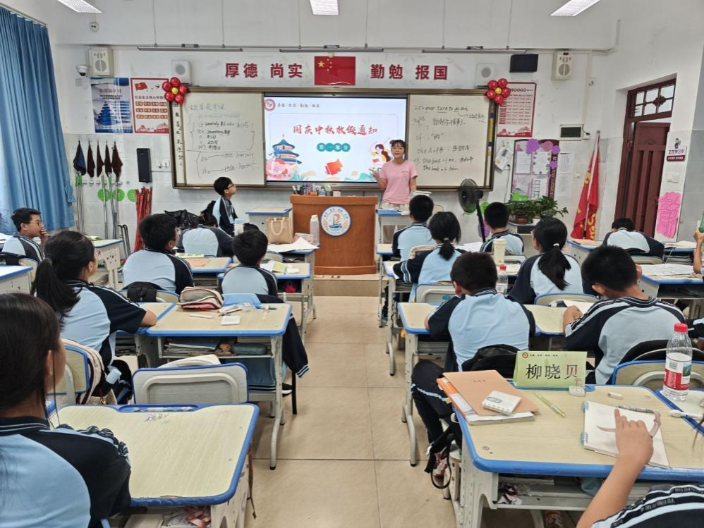 (实习教师黎心茹讲授《国庆中秋放假通知》主题班会)