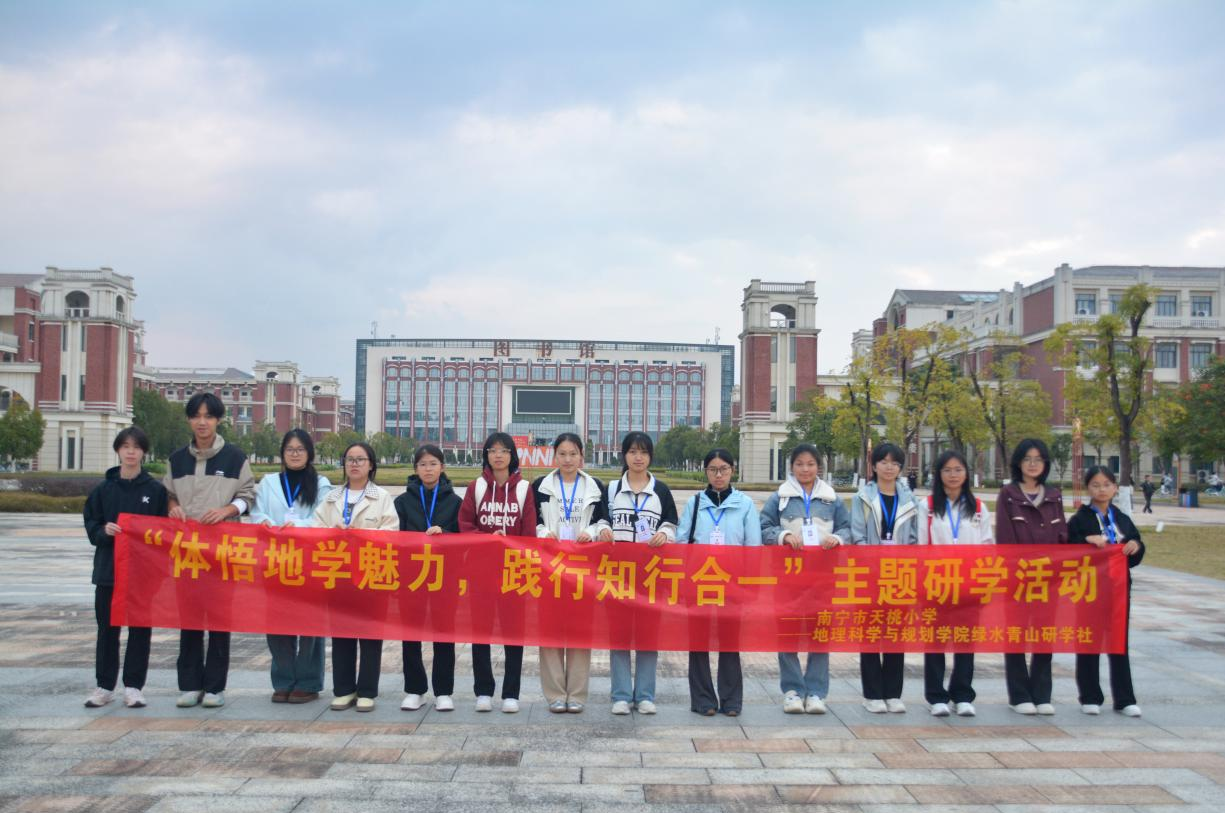 为深入贯彻落实党的二十大精神,扎实推进“知行合一”育人理念落地见效,12月14日上午,南宁师范大学地理科学与规划学院绿水青山研学社携手南宁市天桃实验学校银杉校区,在南宁师范大学武鸣校区成功举办“体悟地学魅力,践行知行合一”主题研学活动,让小学生走出课堂,沉浸式感受地理学的独特魅力。