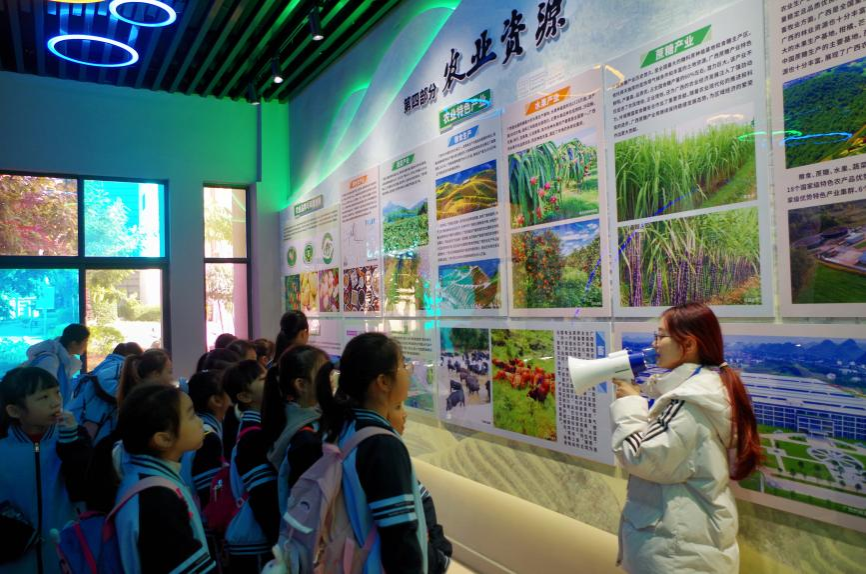 此后,同学们先后参观了自然资源科普基地与天文圆顶。在自然资源科普基地,志愿者围绕广西独特的自然资源,结合区域生态保护案例,讲解了自然资源合理开发与生态环境保护的重要意义;在天文圆顶内,同学们通过观看宇宙主题影片,沉浸式领略星座分布、星系结构等天文景观,深化对地理空间的感知,逐步形成“观察—思考—实践”的完整认知闭环。
