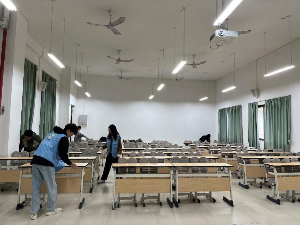 党支部书记韦萍萍同志作简要动员并明确清洁要求后,全体党员佩戴党员徽章,入党积极分子身着蓝色志愿者马甲,以五人一组的形式分工协作,对指定教室的门窗、桌椅、黑板及地面进行了系统清理。全体党员以身作则,展现了不怕苦、不怕累的优良作风,用实际行动美化了校园环境,提升了师生学习空间的整洁度与舒适感,营造了清新宜人的育人氛围。