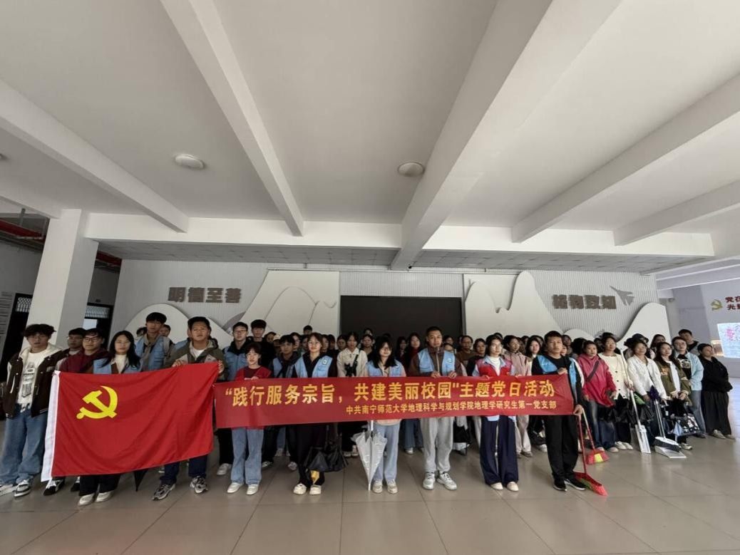 10月30日下午,地理科学与规划学院地理学研究生第一党支部在武鸣校区一号与二号教学楼成功举办了“践行服务宗旨,共建美丽校园”主题党日活动。党支部全体党员、入党积极分子及各党支部代表积极参与。