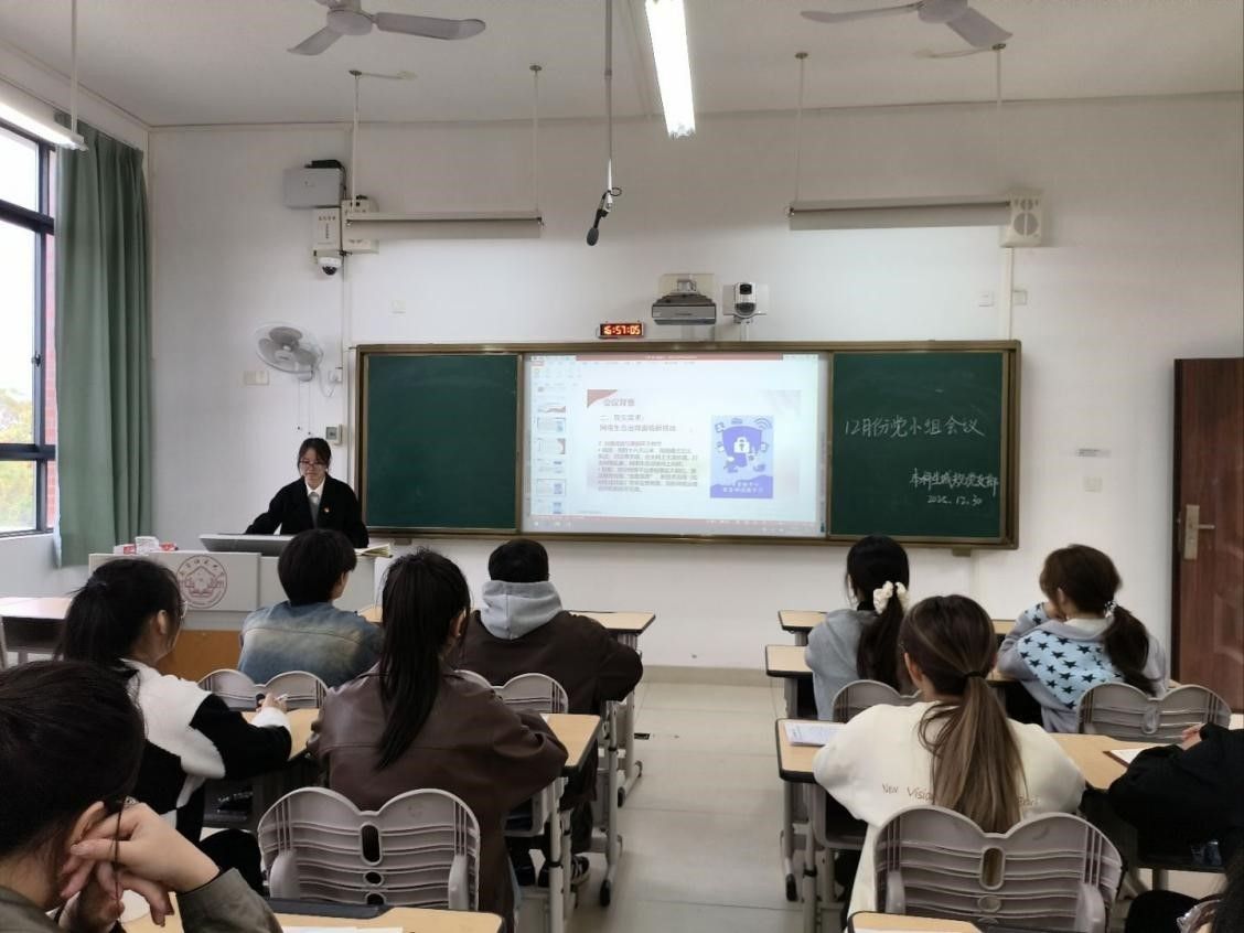 12月30日,地理科学与规划学院本科生城规党支部在武鸣校区2号教学楼205教室顺利召开十二月份党小组会议。会议由党员韦巧慧主持,党支部全体成员参会学习。