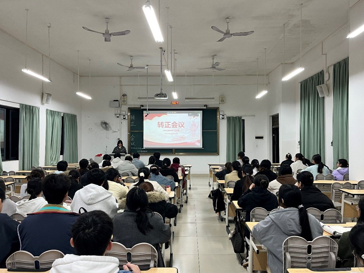 12月26日,地理科学与规划学院本科生地科第二党支部在武鸣校区1号教学楼116教室召开中共预备党员转正会议。此次会议由何玫玫同志主持,党支部全体党员参会。